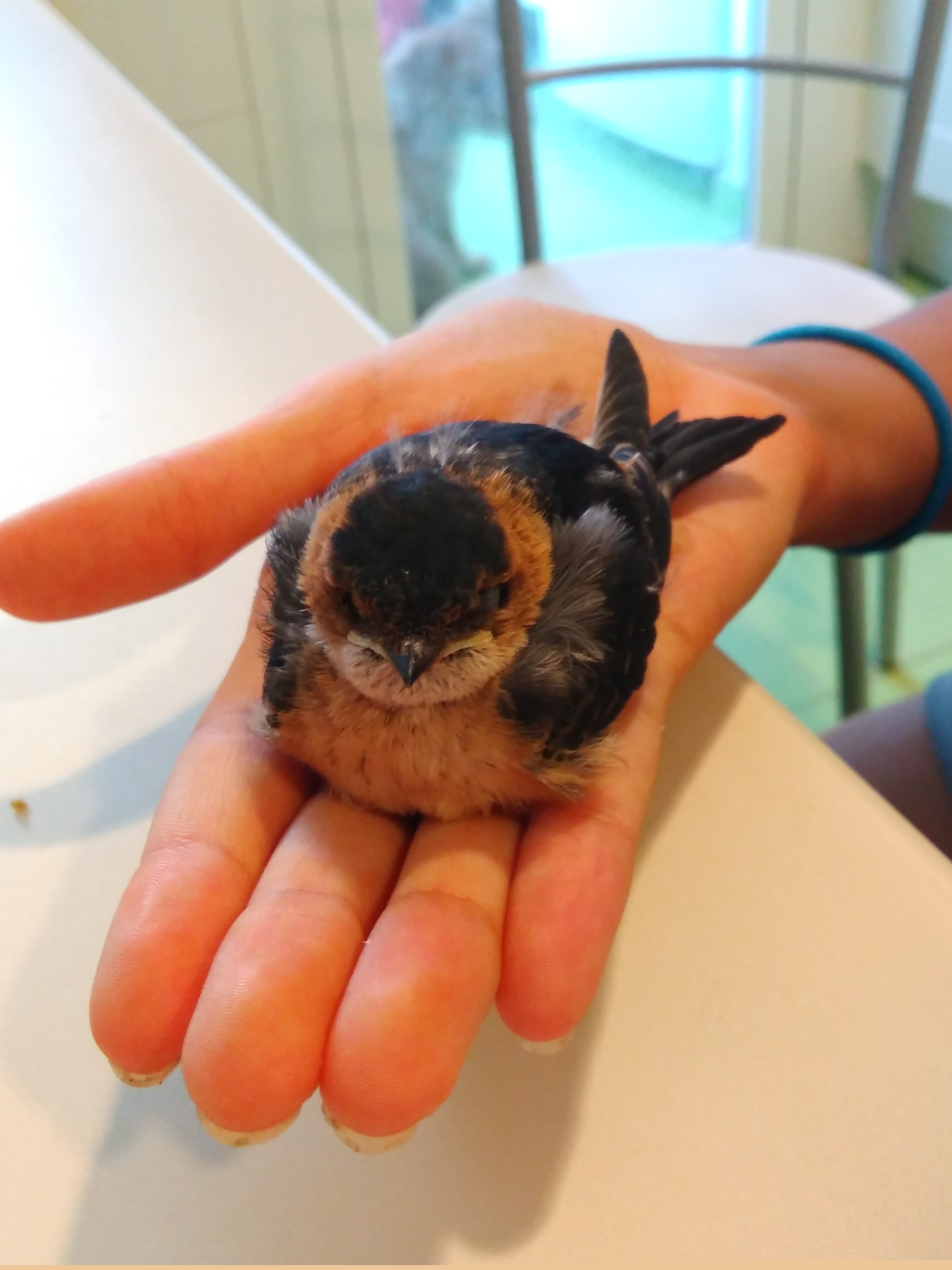 Ayer me encontré a este pequeño cerca de mi casa. No había nido cerca y estaba exhausto, con el buche completamente vacío y sin fuerzas, ni siquiera se podía sujetar sobre sus patas, así que me lo traje a casa. Le estoy dando papilla con palillo y está mucho más recuperado. ¿Podéis decirme qué es? Y de paso algún consejo para cuidarle mejor.