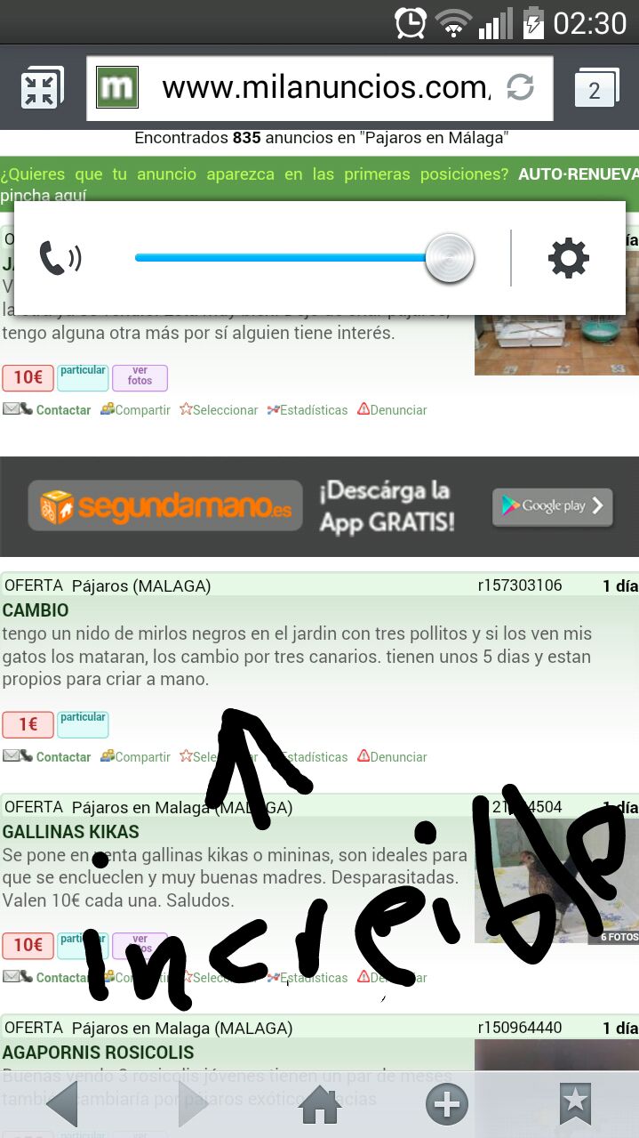 Bueno señores, hoy vengo a expresar mi rabia pues odio que al llegar estas fechas "milanuncios" se llene de vendo jilgueros criados en voladera, vendo nidada de jilgueros de mi voladera, pero ya la rematadera es cuando hay gente que afirma que son de nido, os adjunto una imagen para que lo veáis, lo paso por un grupo de Whatsapp el compañero nane...