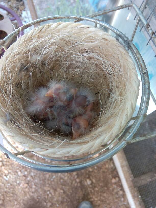 EIIIIIIII,que chulos,yo cuando hay alguna hembra que no les da de comer ,los dejo en el mismo nido y le voy dando de comer cada dos horas mas o menos,pero es muy importante que la madre se heche en el nido i los caliente,porque si no tendras que ponerles un punto de calor ,ya que son muy delicados y al momento se enfrian,
