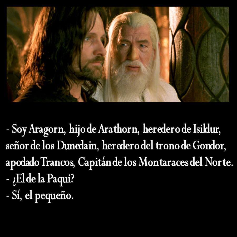 jajaajajajajajajajaja lo había visto es buenísimo, que manera de qutarle la solemnidad al Rey Elessar, Piedra de Elfo.