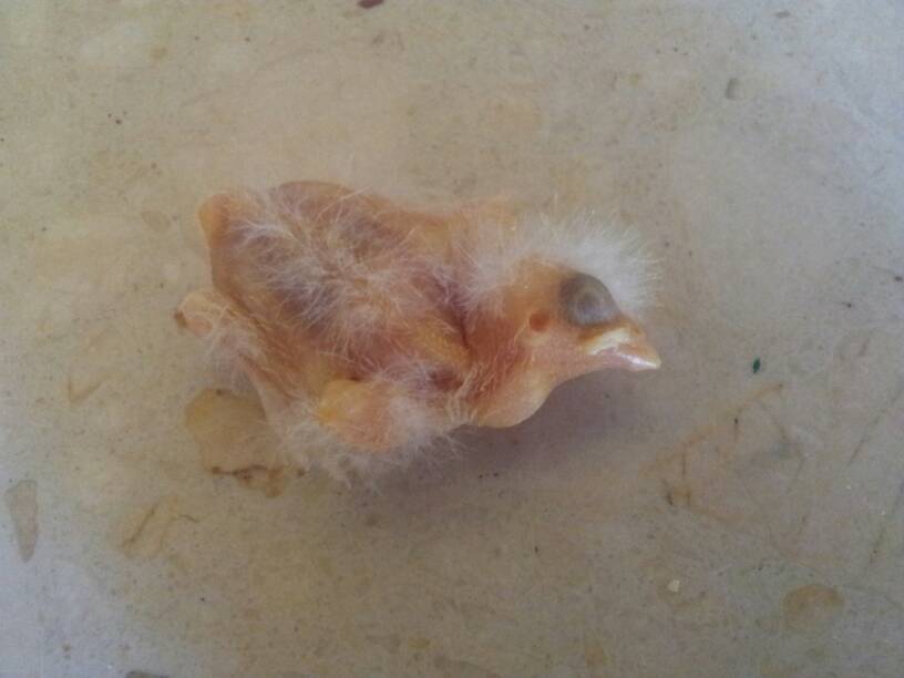 Hola:'( queria comentaros que mi pri.era criA  me la he encontrado muerta hoy a las 6 la tarde y estaba viva a las 2. Segui en su nido parecia que dormia pero la vi muy quieta y eataba tiesa. Y comentaroa que habia un huevo y la 3 cria murio pk no pudo salir del huevo...que habra pasado con el de la imagen? La madre esta echada como siempre.. hiy ha hecho 31º le puse un bañera con un poquito de agua esta manana y en la tarde no habia nada de agua... mojaria a la cria? No entiendo nada