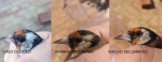 Os dejo un par de fotos comparativas entre el caso dudoso, una hembra declarada y un macho declarado, los tres ejemplares noveles de este año y capturados en el mismo sitio, por lo que en teoría compartirían genética y misma morfología. Mi conclusión así a vuelo pronto es que tiene cabeza de hembra y hombro de macho. Juzgad vosotros mismos...