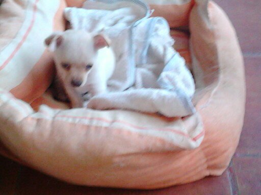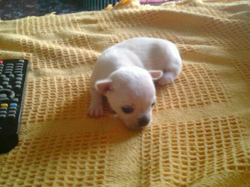 Aquí vengo a llenar otro poquito este post  ???. hace una semana o poco mas fue un amigo a comprar un chihuahua para la mujer, y no tuve una idea mejor que ir a acompañarlo a por el, y acabe yo con otro  O0, un machito con 3 meses. Pero hay no acaba la cosa, hoy e ido con la parienta a casa de su tío y resulta que cría chihuahuas, y me a regalado una hembra con 6 semanas!!!!