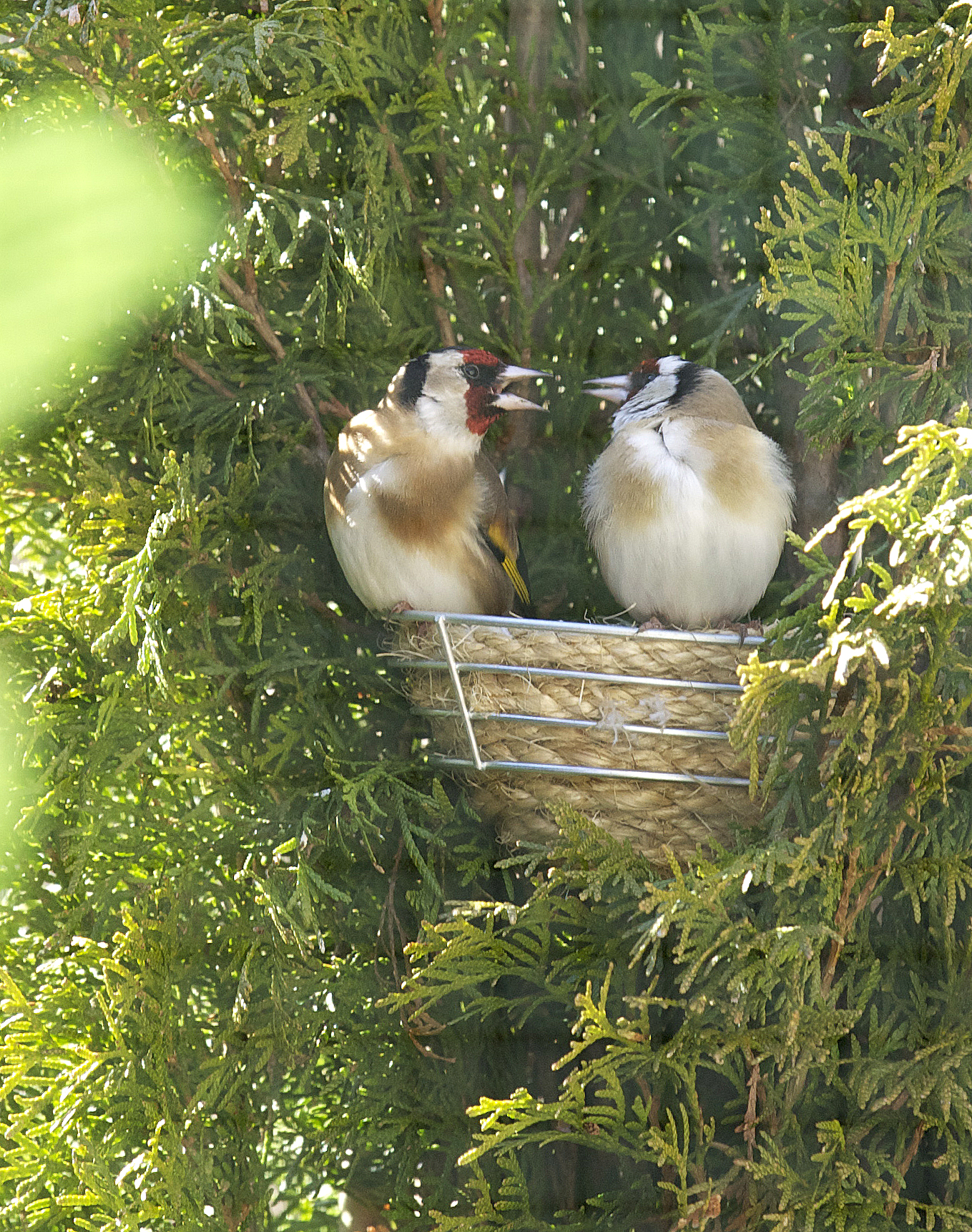 La jilguera tambien canta bastante, estan casi siempre pegados jaula con jaula, pero este me lo llevo de paseo y a la hembra la dejo en casa en el salon con los otros pajaros. Yo con ella quiero esperarme hasta abril o mayo que llegue ya la primavera de verdad, y coja su propio celo natural.