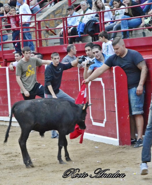 No obstante, para que se vea que ni de lejos soy Anti-taurino, aqui van unas fotos de vaquillas y toros, voy de pueblo en pueblo a los recortadores, inclusive me animo a salir a la plaza, esto si me gusta mucho el tema de recortes, las fotos son echas por mi.