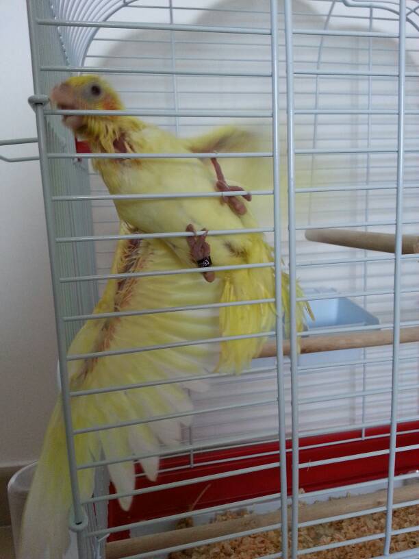 Aqui teneis unas fotos en sus primeras escaladas con la ayuda de las garras y el pico, también salir de dudas por lo de ninfa lutina perlada( no se ve manchada), saludos.