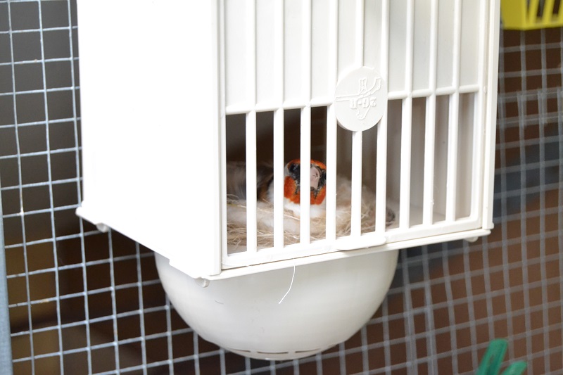el dia 10 de marzo les puse los nidos y material para hacerlos, y enseguida algunas empezaron a jugar con el sisal y algodon