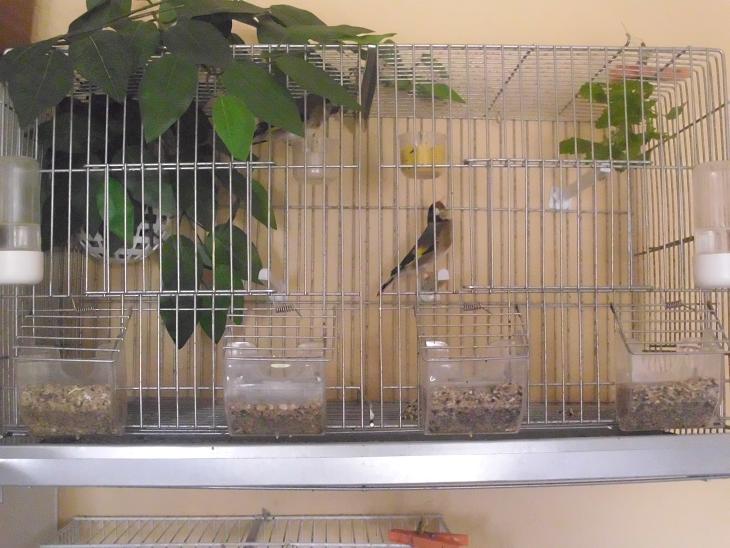 Buenas, pues hablando de camuflaje, al final me decante por la jaula de cria, mas comoda y asi lo puse, a ver si la hembra esta deacuerdo y le gusta la cosa, el nido esta por ahi que ni se ve, pero esta en verdad Sonrisa un saludote