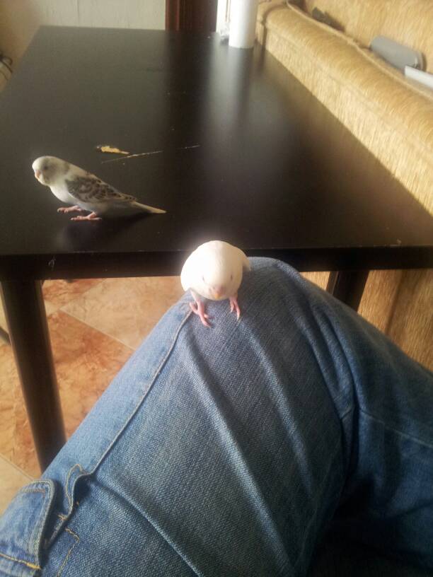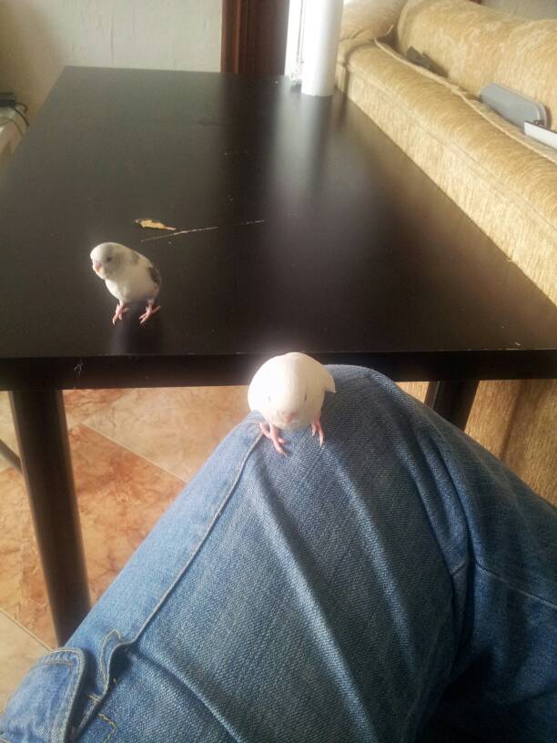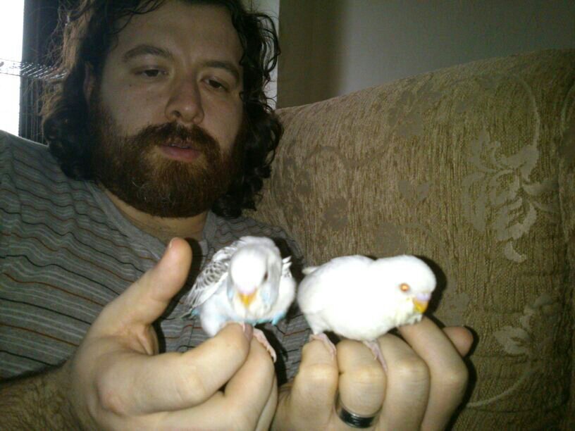Buenobhacia yavtiempo que no ponia fotos de mis chiquitines desde el ultimo post estan ya en la jaula y comiendo solos. me dio una alegria verlos comer panizo semillas y demas que se olvido echarle fotos desde entonces pero no me despego de ello para nada(siempre que estoy en casa claro) hago sueltas controladas de 30 minutos cuando piden de salir. Se cansan y vuelven ellos solos a la jaula son mas ricos hay va algunas fotos mas. Hay vabuna extra con mi careto recien levantado jiji