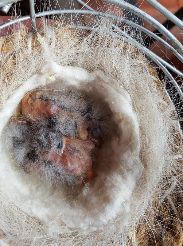 La hembra puso 5 huevos,uno no se donde fue ha parar,tal vez conte mal?? de cuatro han nacido dos ,los otros dos estaban muertos dentro del huevo,completamente formados ,no sé cual pudo ser la causa???.