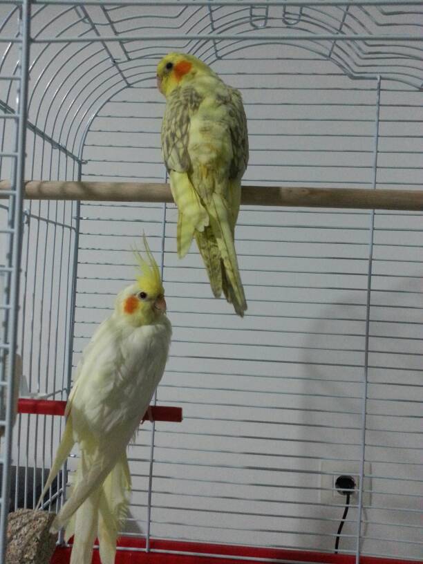 Si yo también pienso que es macho pero como ahora el mas blanco canta bastante y eso que creo que es mas peke por que en la cabeza esta un poco calvo, pero tendran al rededor de 3 meses los dos, el blanco con lo que canta seguro es macho pero el amarillo solo hace pi pi pi y de hay no pasa, el blanco si es macho verdad?? Creéis que es bueno meterlos en la misma jaula ya? Han dormido separados, compremos otro para que se hagan compañía pobres jejeje