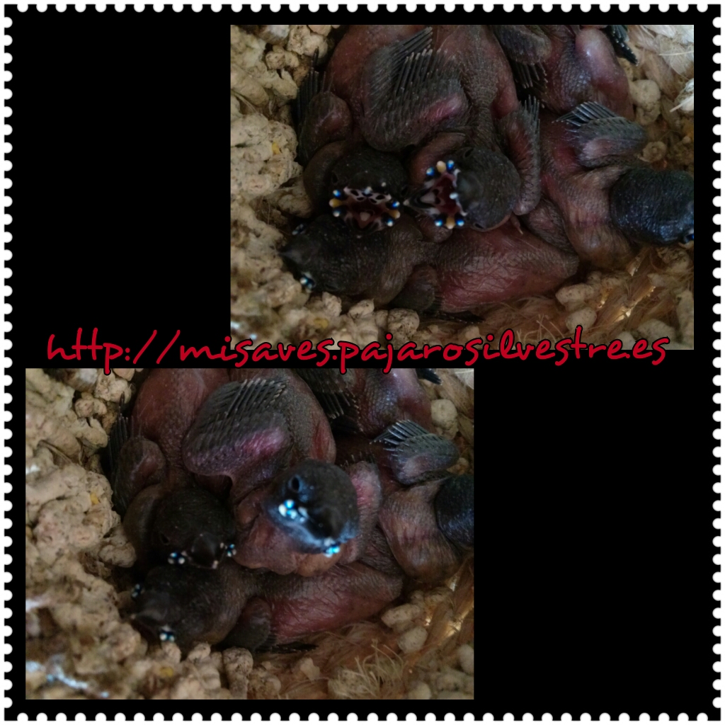 si si, los buches parecen globos!! y alimentados por 2 machos isabelitas que están!!! (si llega a haber una hembra.....de esas como nuestras abuelas que solo querían que comieras y comieras porque si no estabas rolliza no estabas guapa......ni os cuento como estarían!!! me faltaría nido!!!) pues lo de la cabeza negra igual es porque la madre también es cabeza negra.... (igual he dicho una tontería....pero seguro que leles o los expertos que por aquí andan, nos sacan de dudas nane)aaaaaaaaaaaaaaaah y notición!!!! de la segunda puesta!!! los 5 huevos también están pisados!!!! de estos dudo más que salgan tan bien para adelante, porque las isabelitas son 4 y tienen ahora 6 meses..... :-X pero bueno....por probar.... 8)