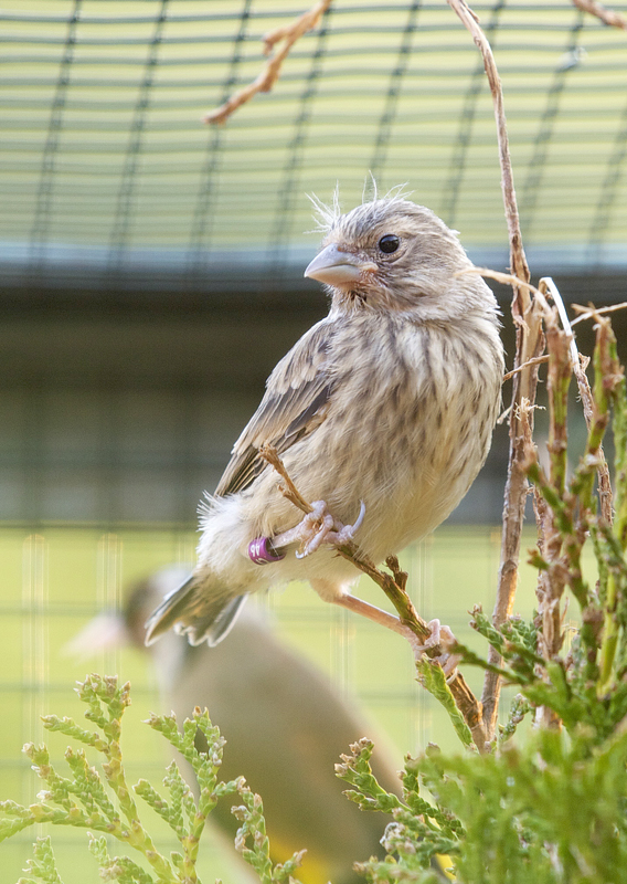 Hola amigos,estoy bastante contento ,ya que hoy he anillado dos pichones más .Tenia 4 huevos dos pisados y hoy han cumplido 8 dias jejejeje lo que pasa es que la hembra se cual es,ahora tengo que esperar ha saber quien es el macho???? ,yo de momento no puedo saber de que es el mixto ,si de pardillo,verderón o jilguro,si alguien lo sabe ???.os subo una foto.