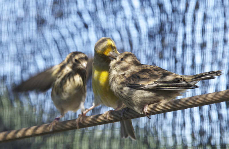 Hola amigos,ya que no hay noticias explicaré algo que me ha pasado.Tengo una canaria cobre en una jaula de metro junto con un jilguero desde Febrero y pasaban uno de otro,parecia que habian marcado el terreno que tenia que pisar cada uno y cuando la canaria lo traspasaba el jilguero le reñia,así asta hace un par de semanas que me cansé y le cambie la canaria bronce por una amarilla por si le gustaba más .Al cabo de una semana el jilguero empezo ha cantar como nunca lo habia hecho y ví que la canaria bronce le iva contestando  y decidí volverle ha poner la canaria bronce y no tuve tiempo de separarme de la jaula que el jilguero empezo ha cantar como un loco ,la canaria se puso en posición y al fin!!!!!!!!! al cabo de 5 meses la pisó.Colorin colorado este cuento se ha acabado.