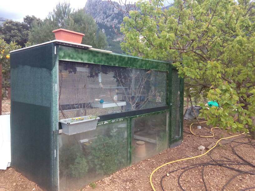Pero bueno pinta bien la voladera por que tiene un árbol enorme al lado y cuando empieza el calor le dará sombra y ahora que hace frío al no tener hojas les da el sol un montón