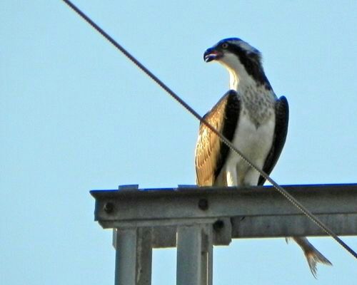 Aqui va la mia, aguila pescadora con su presa, lastima que no se ve bien el pescado por la torre...