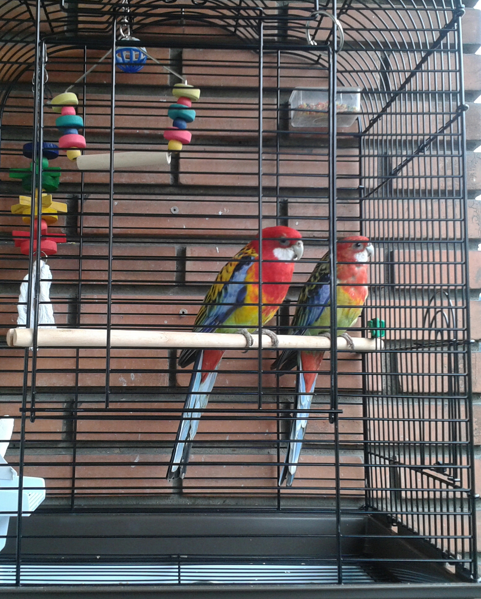 Tenemos una Rosella, macho. Es espectacular, la tenemos a veces suelta y le encanta cotillearlo todo. Es muy curiosa, reconoce a la gente, pero es tmuy timida. Cuando vienen invitados apenas se le oye. Hace varios cantos, ó sonidos, el más peculiar es el de la alrma¡¡ y la gente se cree que ha sonado una alarma.