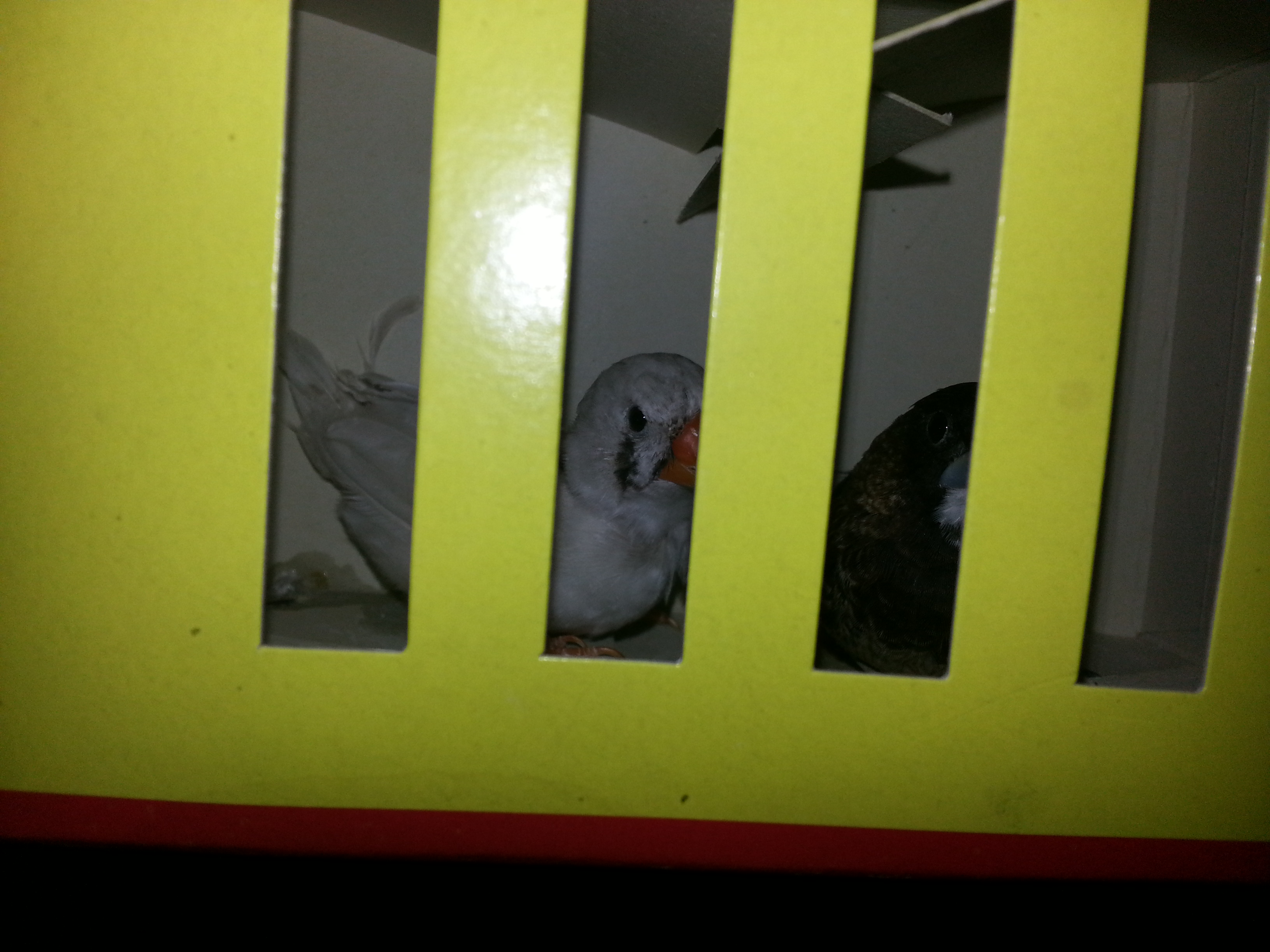 Resulta que hace tiempo le regalé a mi madre dos parejas y los cabritos se ve que se pelean, asique me he traido ese que os digo que tenía el lomo pelaico de los picotazos, asique lo he puesto en una jaulica con todos los mimos posibles y junto a una isabelita ( se llevan muy bien ) y mañana le echaré un poco de betadine y le echare al gua un poco de tabernil muda.