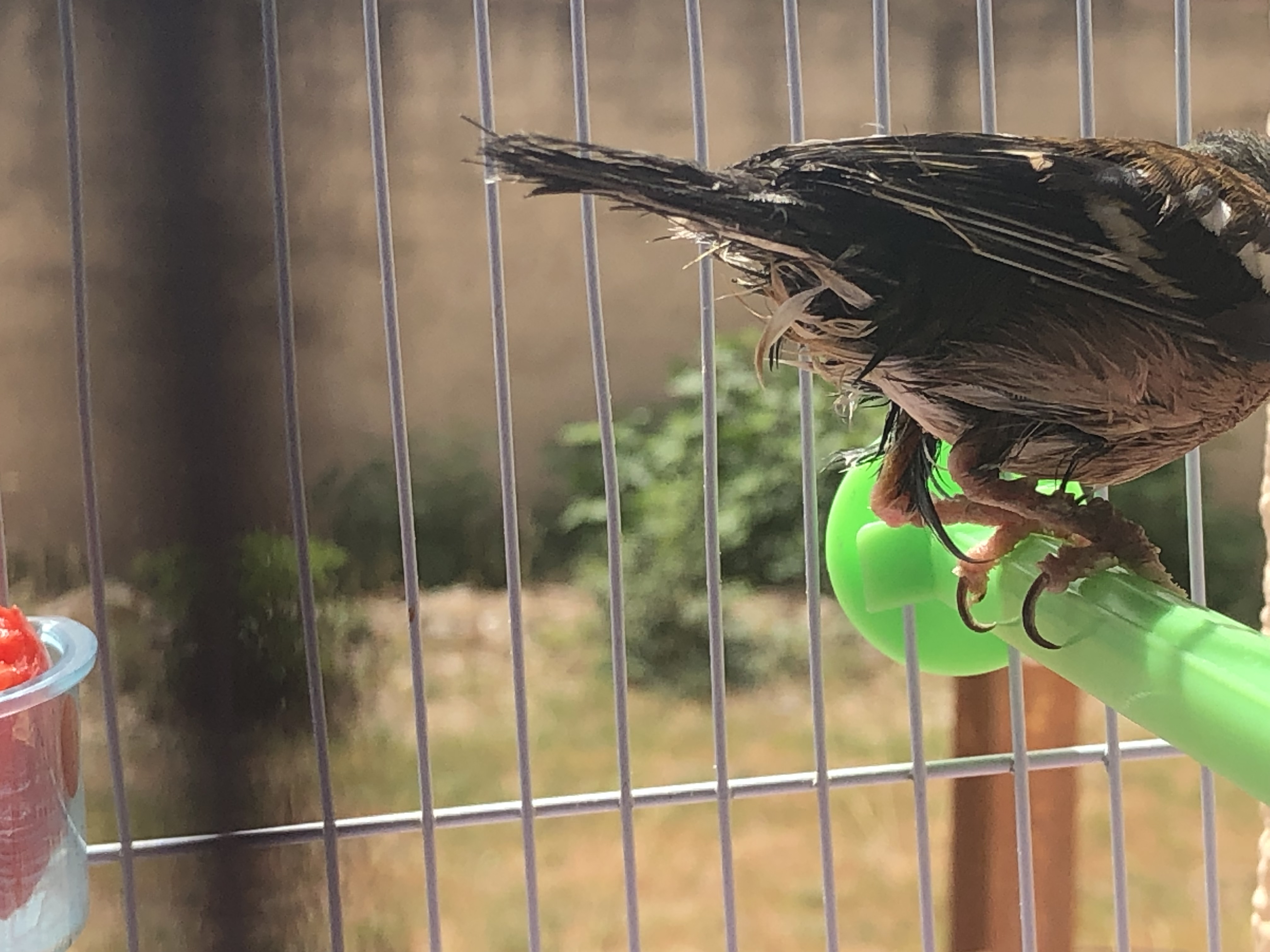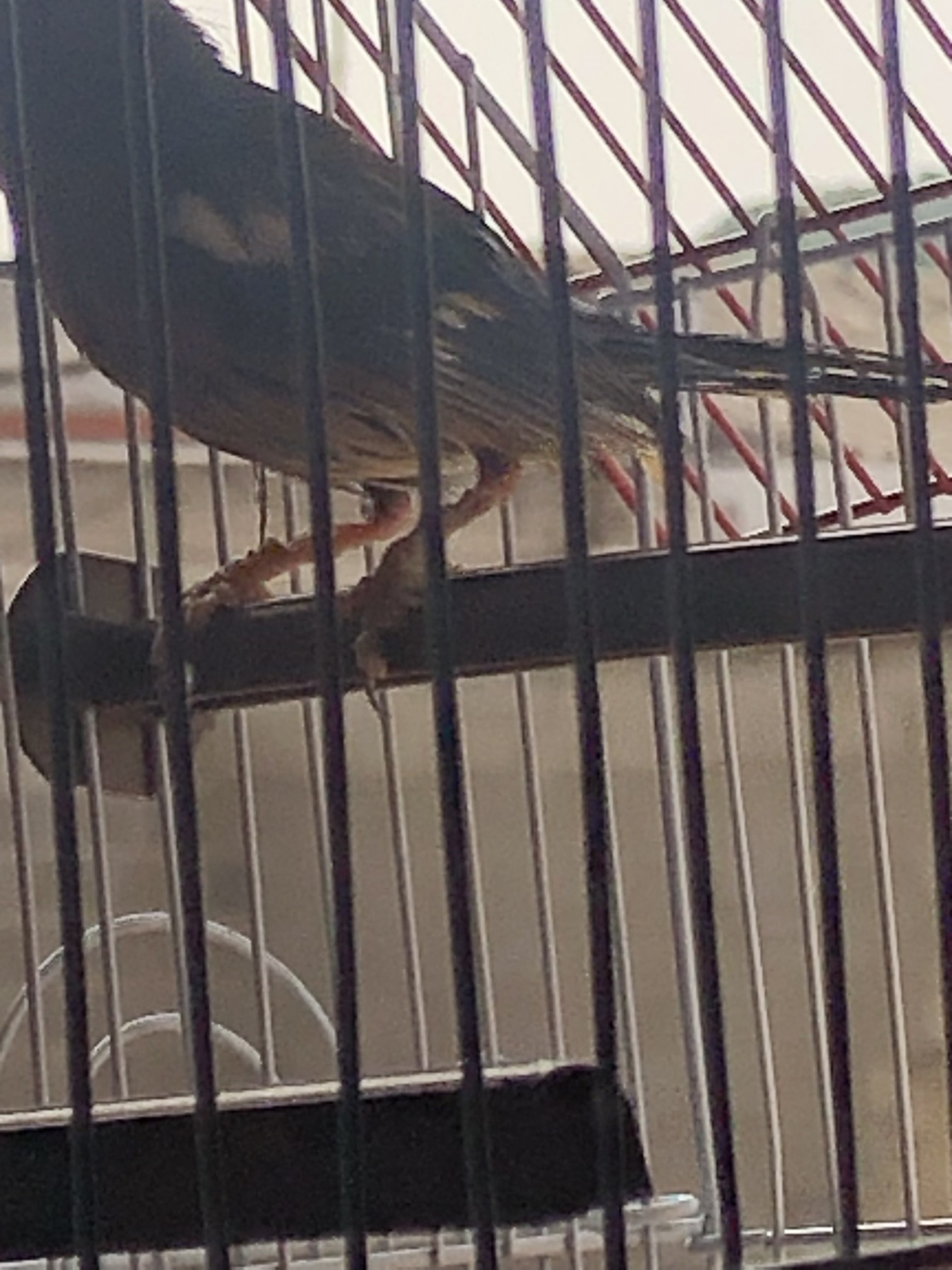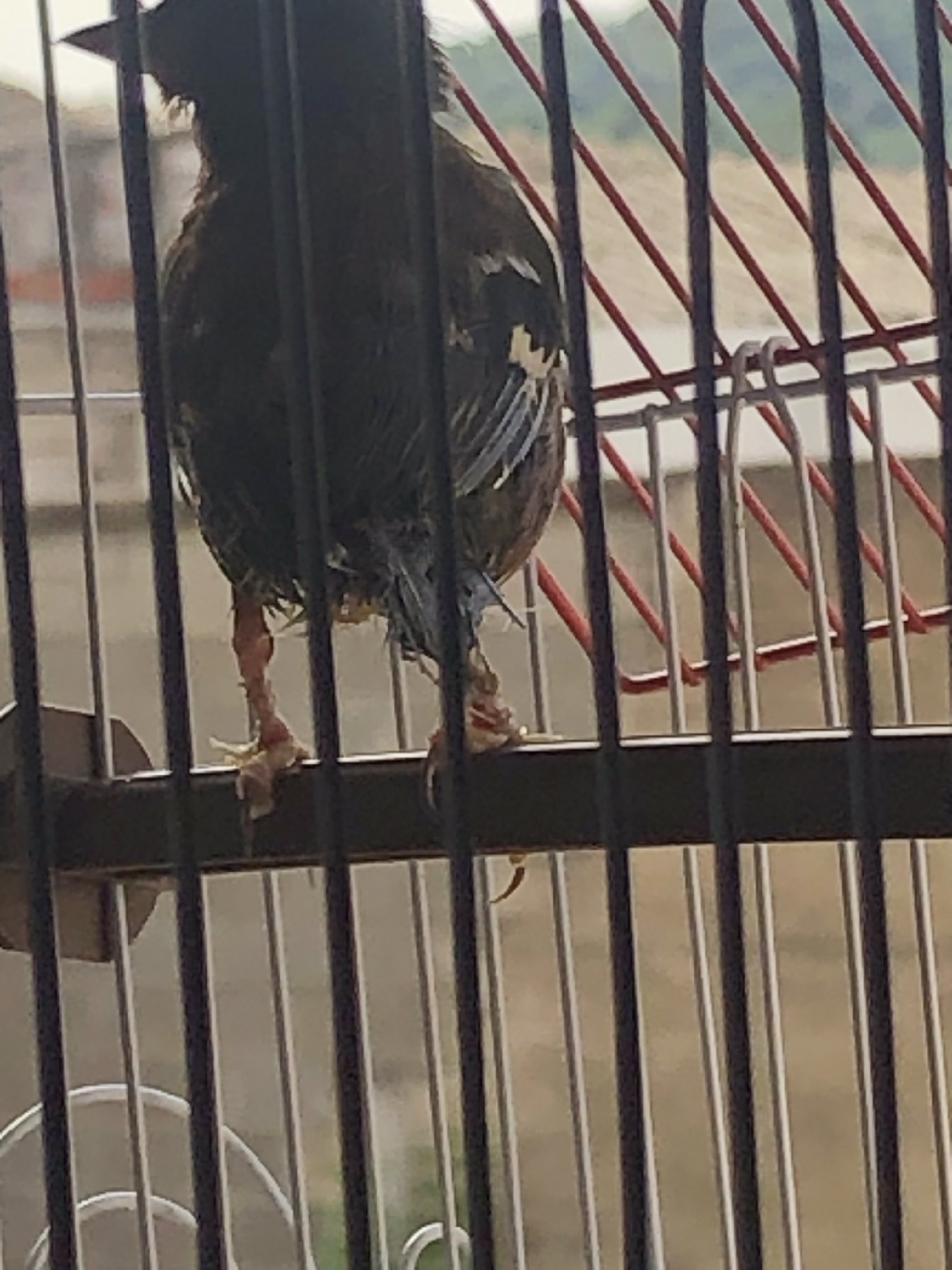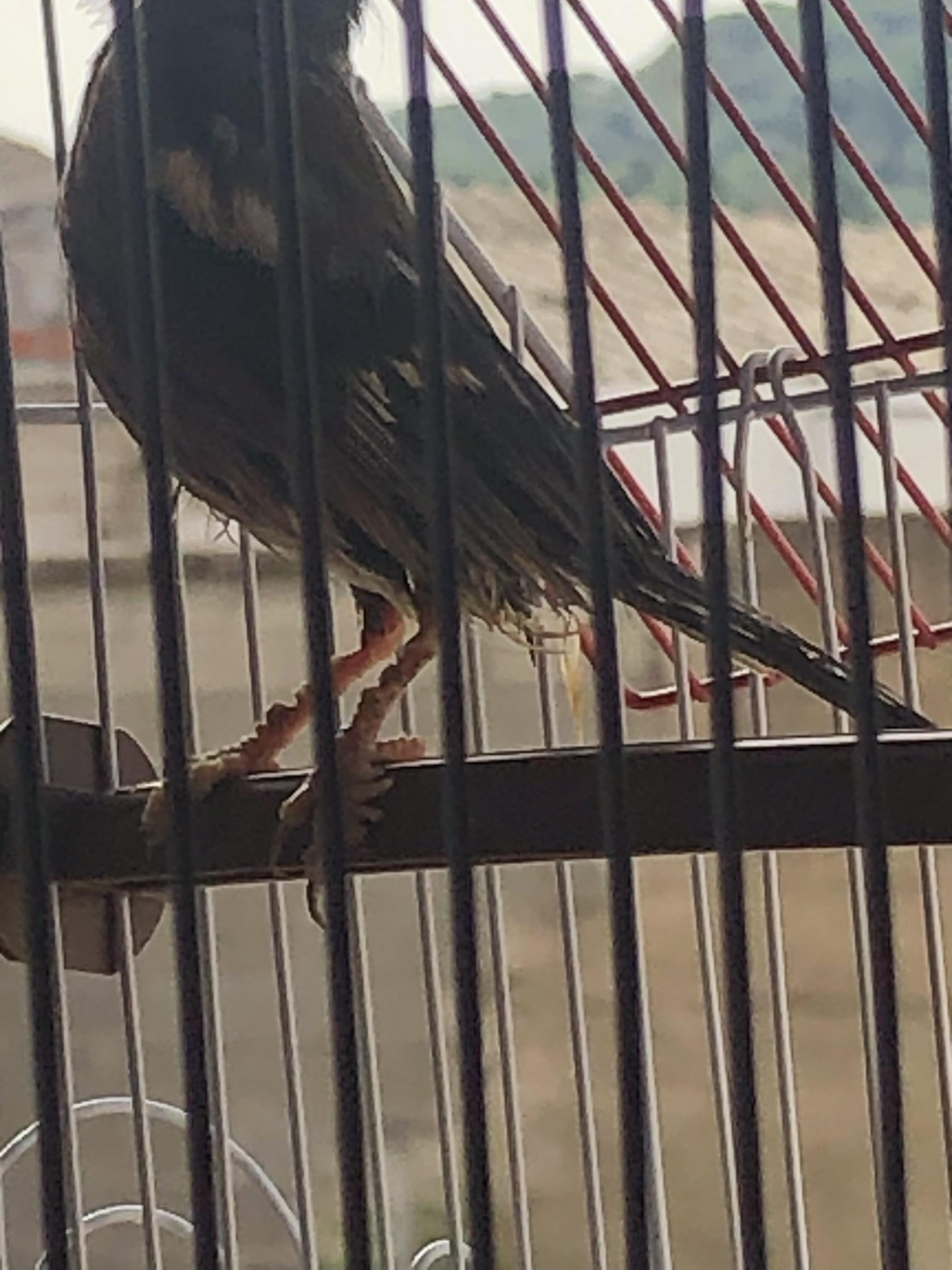 Tiene acaros en las patas y las plumas de la parte final del cuerpo y la cola agrietadas.