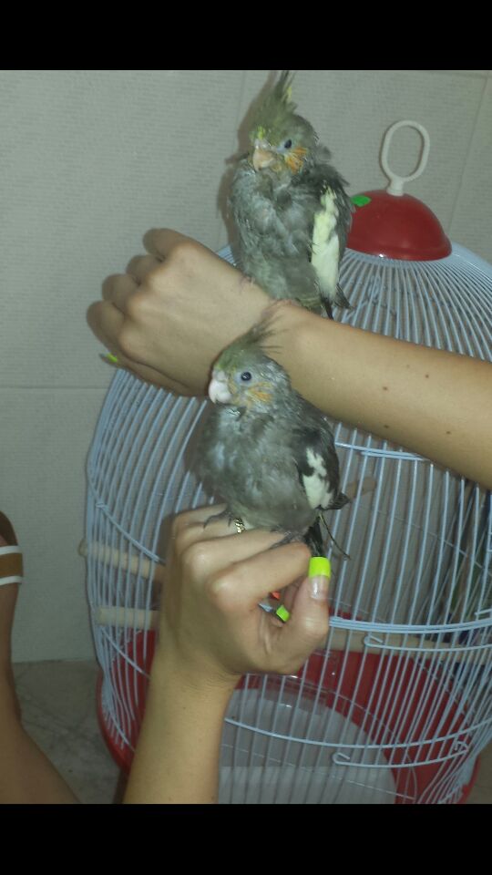 estas son mis ninfas!! tienen un mes y medio aprox. y nada... me tocara esperar a la muda de plumas, porque el cuerpecito lo tienen igual l@s dos, solo cambia un poco el color de la cabeza que uno tiene mas plumitas amarillas que el otro.