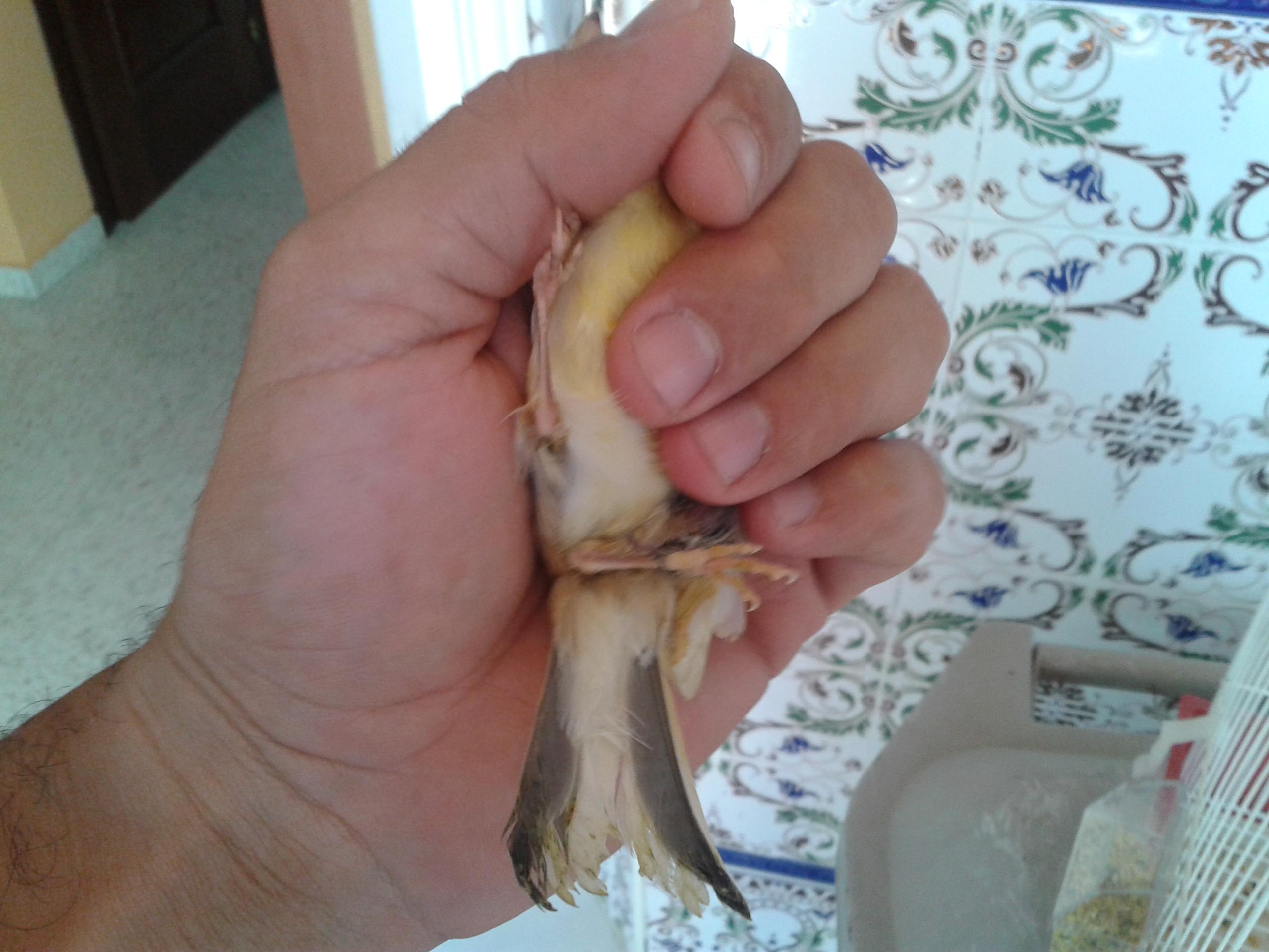hola compis en las foto que subo se me ve mas o menos mi canario/a que tienes un dedo negro y la pata fatal parece que esta partida ala altura de el muslo por que parce que esta como suelta y muy poca fierza en esa pata parece como si la tuviera casi colgando , eaba con mas nuevoa asi que decidi separarlo a ver si se recupera mejos solo que hago por fis como puedo ayudarlo ncontre enganchado en un auna rejilla no se como porrras se engancho ahiest