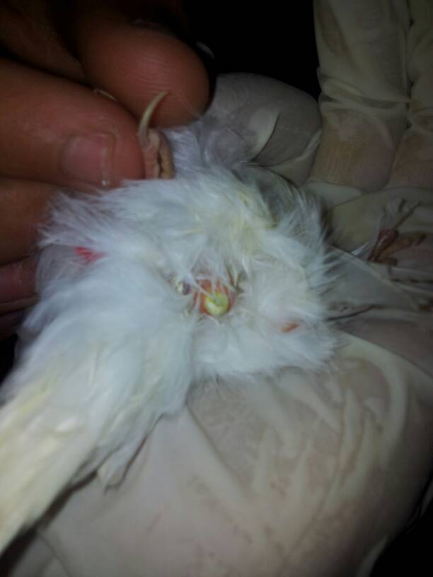 La pajara tenia unos 9 casi 10 meses.. yo la compre hace unos 3 meses poco mas.. .la mezcla que le hago es 1kg t5 1kg de alpiste limpio y dos o tres semillas de 250g.cesped, lechuga.cardo... Los alimento con esa mezcla en el otro comedero les pongo grit una ve en semana lechuga o manzana o pepino si no tengo lo primero. Y lavo la fruta antes de darselas ..panizo y barritas de golosinas se las doy una vez al mes o asi...muy poco. El agua se la doy embotellada y se la cambio todos los dias Esta pájara nunca me crio la queria para empezar la proxima temporada. Hice lo que me dijiates esta tarde la coji vi que en la jaula tenia 2 heces nada mas en tres dias no tocaba la comida la coji que ni se movio al conerla le sople y vi heces secas en su cloaca.. fui corriendo a la tienda y me dio antibiotico y que con agua y betadine le limpiara la cloaca quitando las heces y le diera aceite en la entrada eso hice y en la foto esta como estaba y como se quedo.. ( se volvia loca cuando le tocaba la pobre) luego me dijo que le diera tres gotas en el pico que ya manana estaria mejor y se la diera en el agua 5 dias... pues le meti dos gotas y cuando le di la tercera gota deje el bote en la mesa y la vi sin moverse en mi mano con los ojos medioa cerrados... pues empece a moverla de mano en mano tocandola a ver pero murió. ..ya estaba tieza y el cuerpo super rigida:-[.
