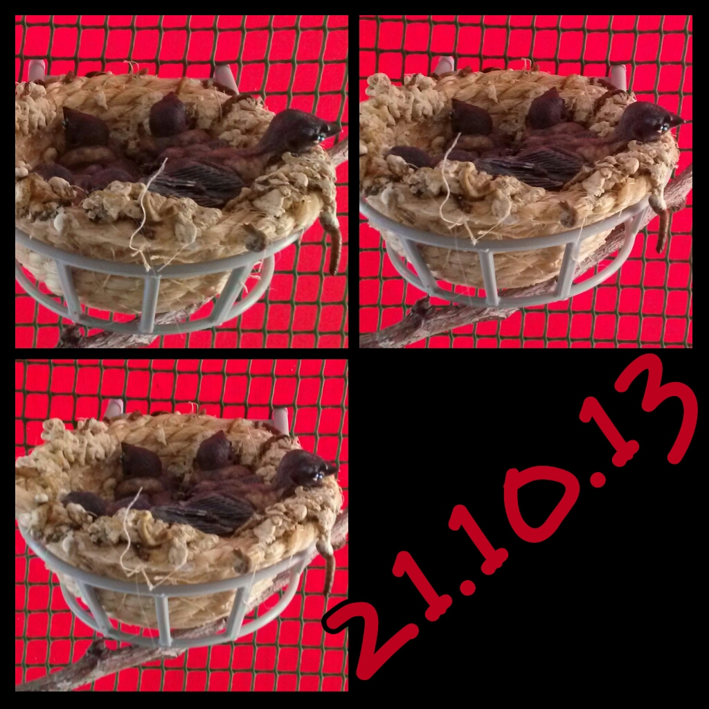 si morente, a medio emplumar, pollos que nacieron el dia 8 de octubre y el dia 5 de noviembre habrían de abandonar el nido (ahora pondré fotos)
