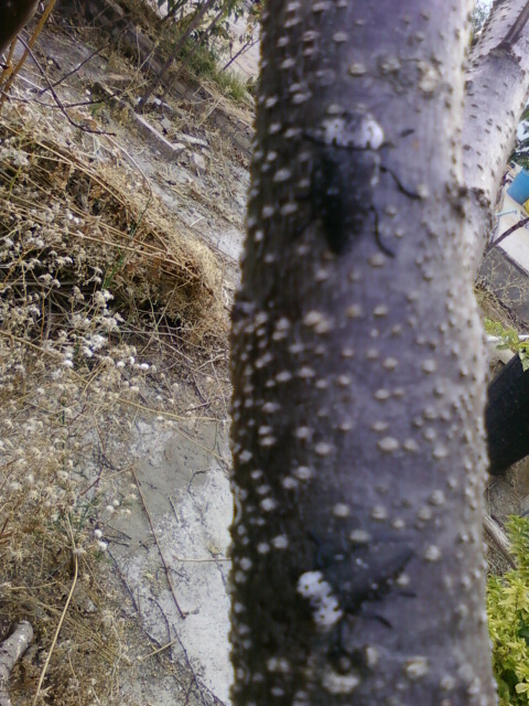 Esta parejita posada en uno de mis albaricoques al que ya se han cargado,me ha dado la clave para entender que les estaba pasando a los frutales que planté el año pasado.