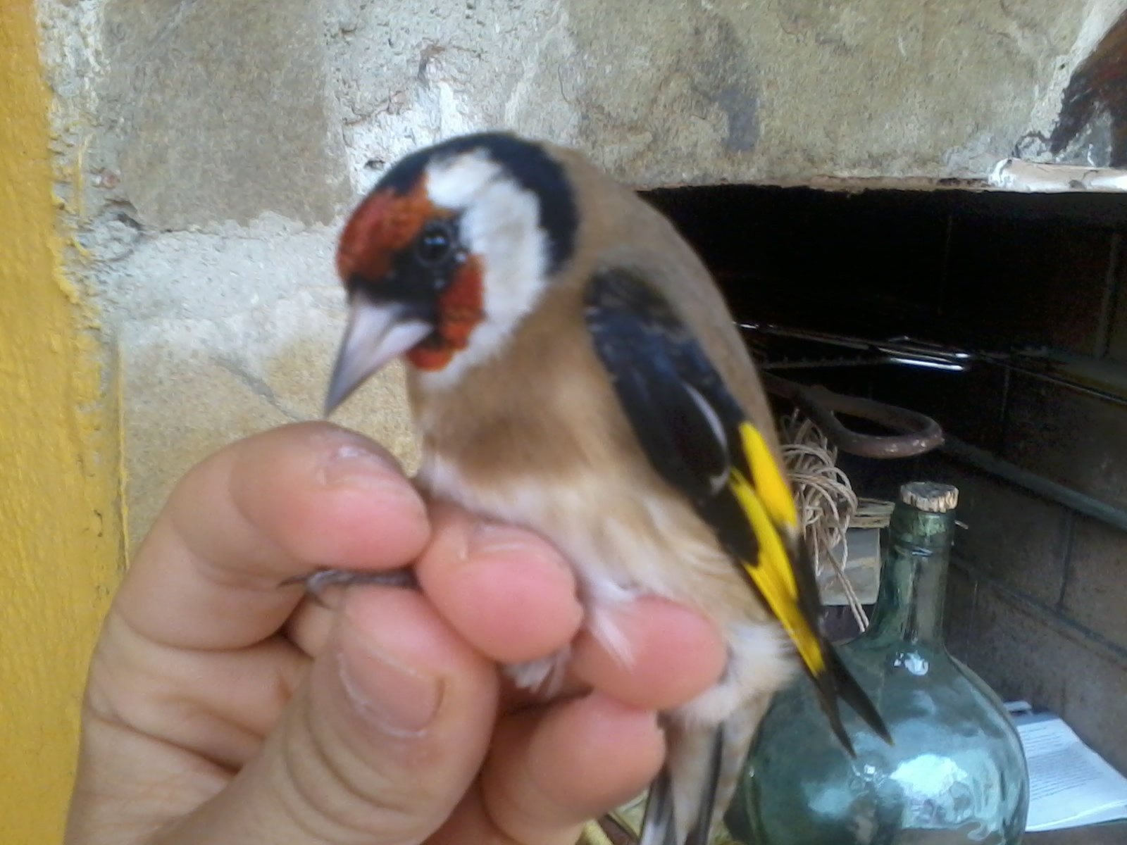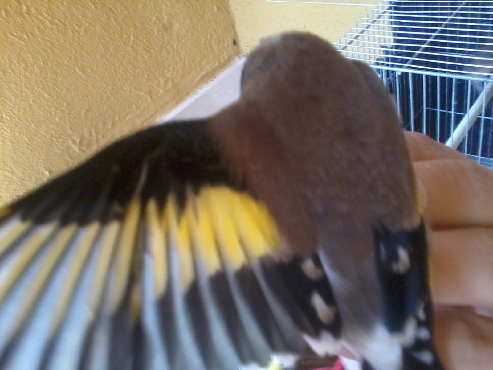 buenas tardes compañeros,queria que me comentarais si este pajaro es macho o hembra,la mancha le pasa un puntito el ojo y en el codo del ala tiene una puntita amarilla aunque en las fotos no se vea, yo creo que es un macho pero preferiria compartir las fotos y que me comentarais,un saludo de antemano,espèro vuestras respuestas.