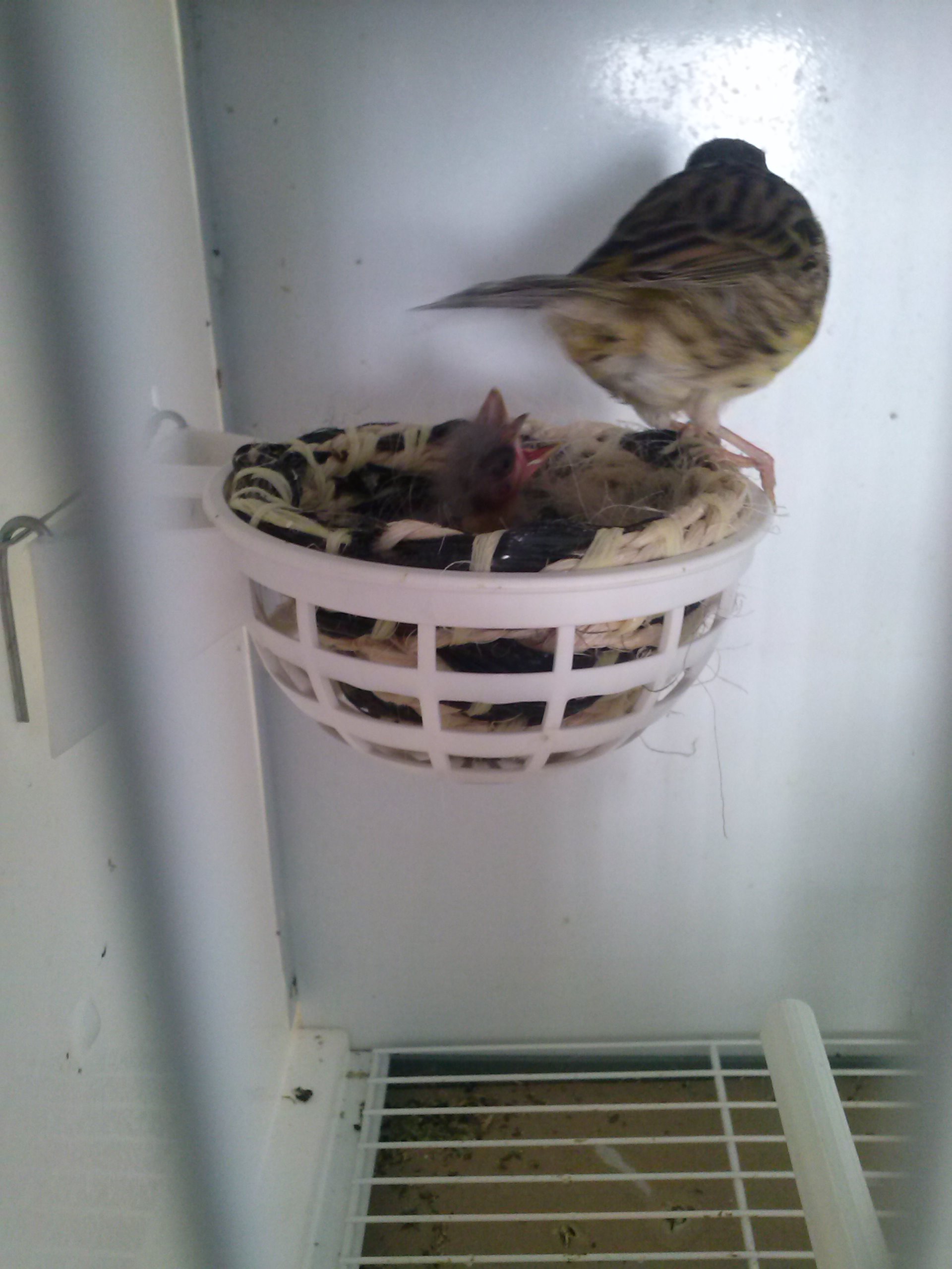 yo suelo retirar los macho no vaya a ser que por mucho celo rompan los huevos o los tiren del nido, para evitar problemas con el, lo saco a la jaula c2 de nuevo, la madre no tarda nada en salir a comer pasta y volver al nido a darles, hay buenos machos que le llevan la comida al nido