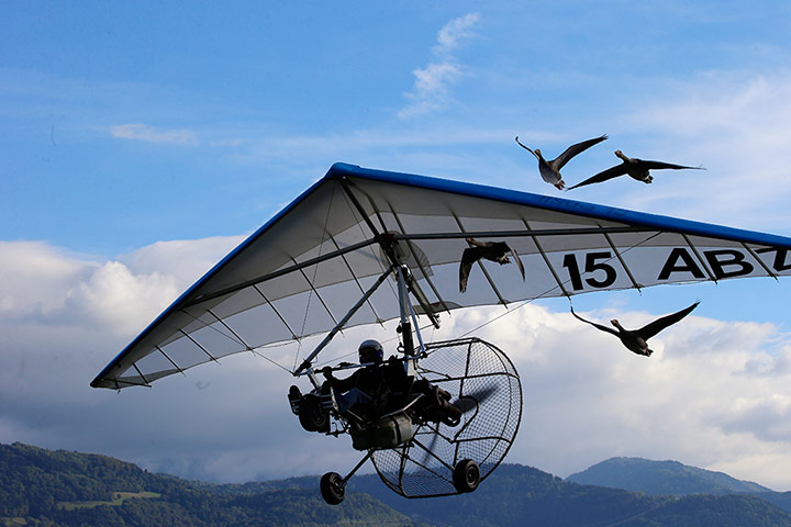 A mí siempre me ha gustado la imagen de los gansos improntados volando con el ala delta