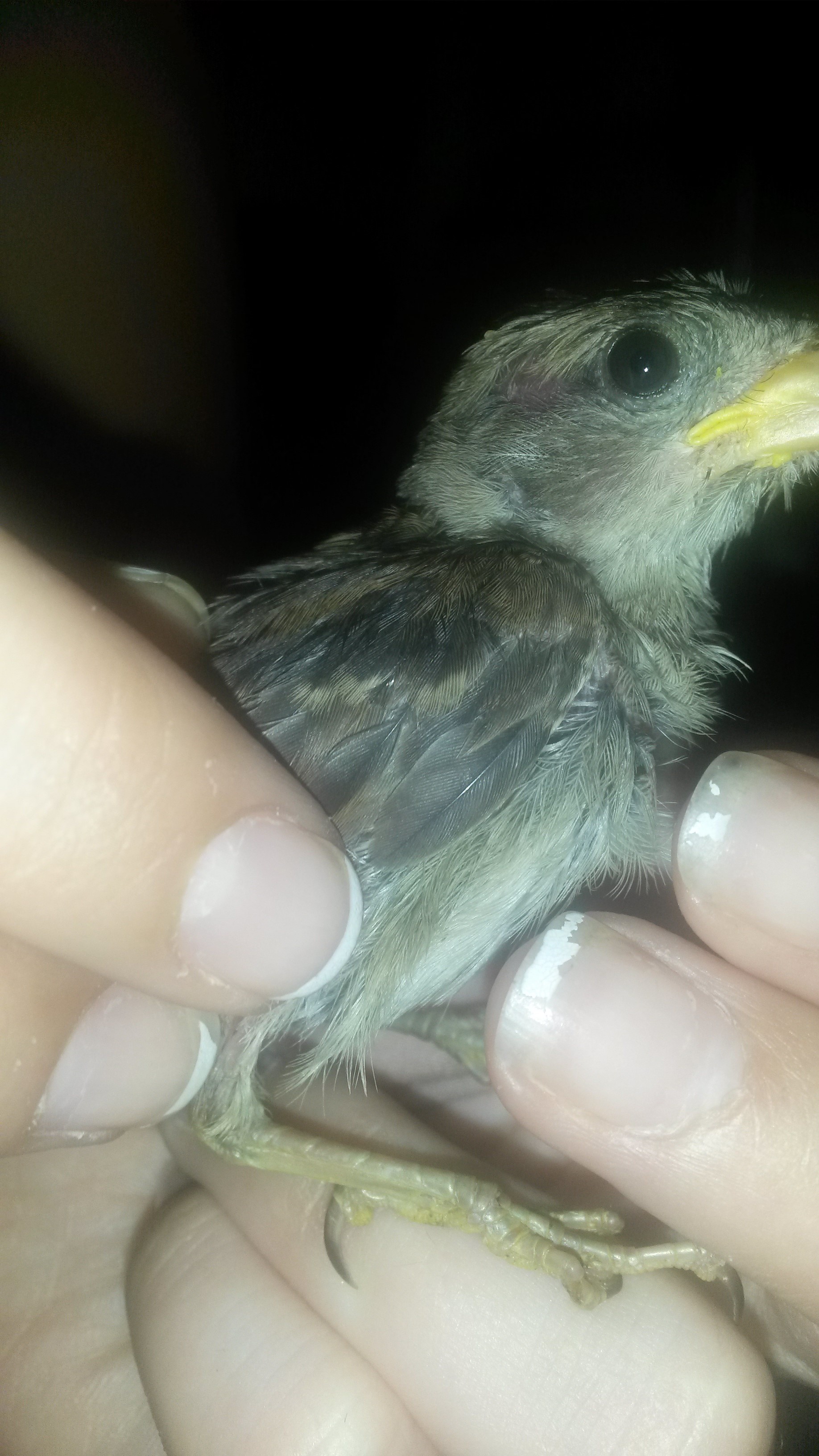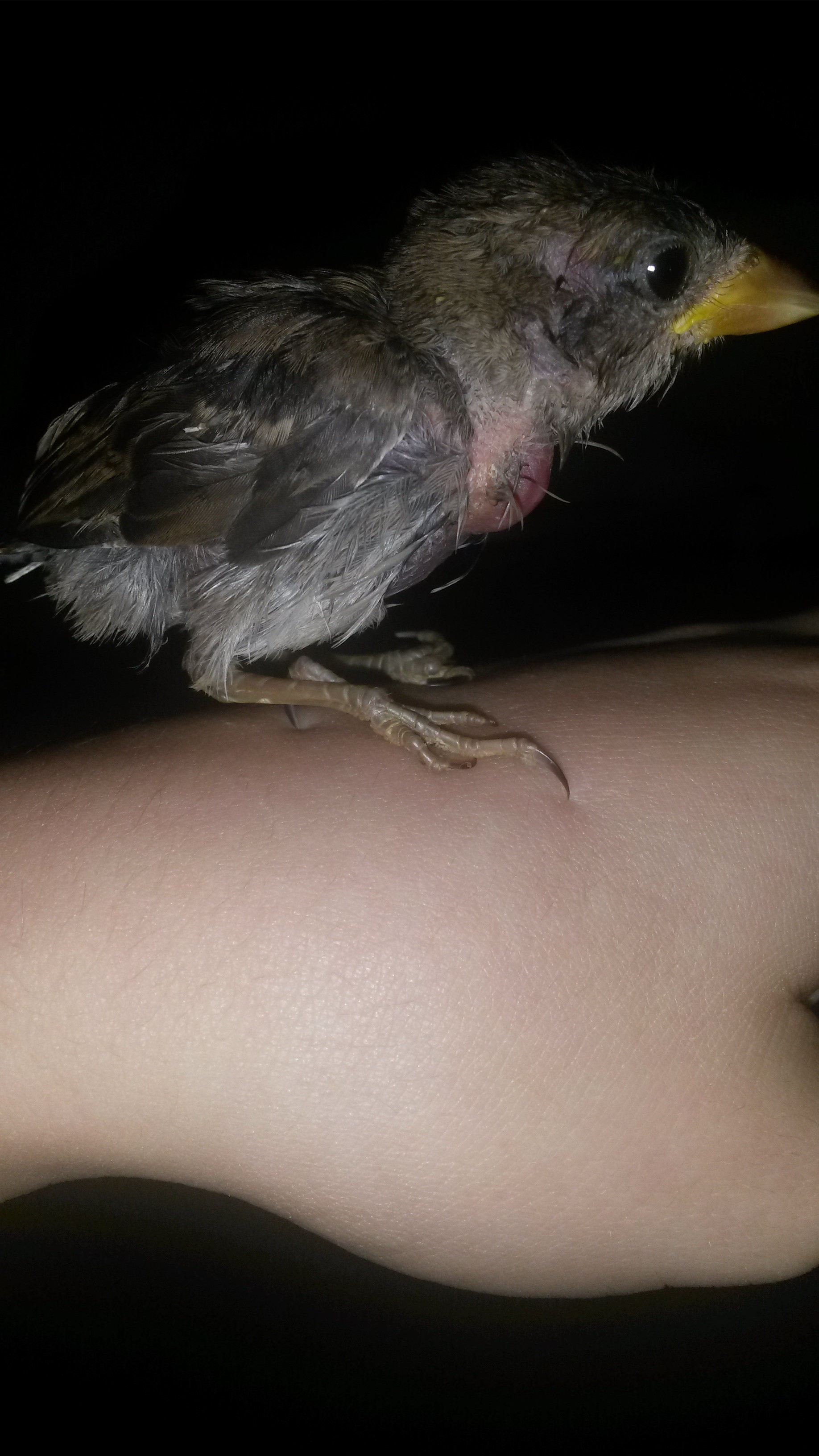 Hola! Hace 1 mes y medio aproximadamente me encontré una cría en el suelo; estaba a pleno sol y en medio de la carretera, así que decidí cogerla para evitarle una muerte segura. Resultó ser un gorrión, aunque todavía desconozco el sexo. La he criado con una pasta amarilla disuelta en agua que compre en una tienda de animales y la verdad que ha crecido muy bien; ahora ya come el alpiste que le he puesto en la jaula; aunque también pica de nuestra comida (pan, huevo, garbanzos, sandia...).