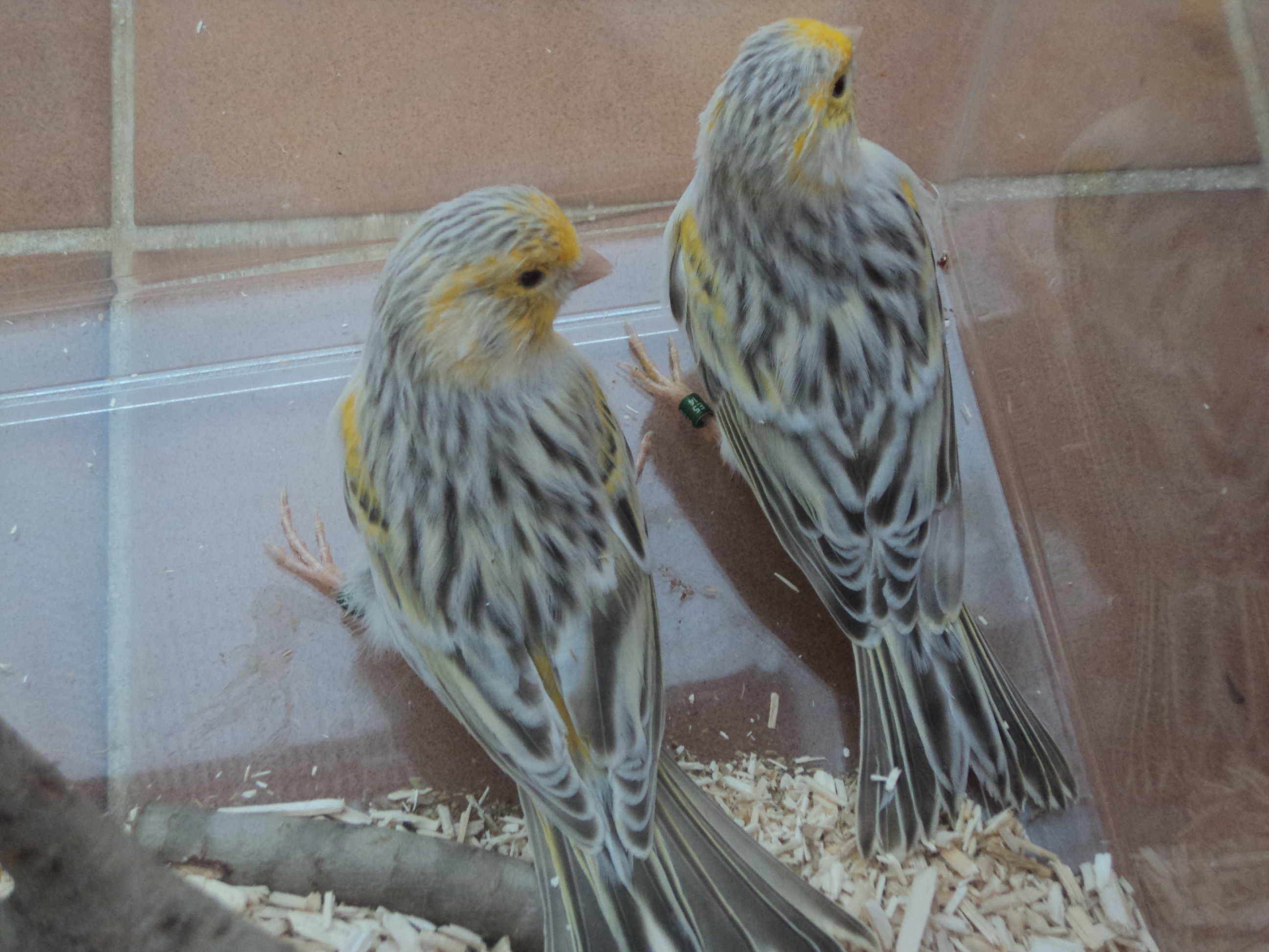 Dos machitos de topacio amarillo mosaico, aun les falta terminar la muda a y recordar que el fotografo es malisimo, un saludo