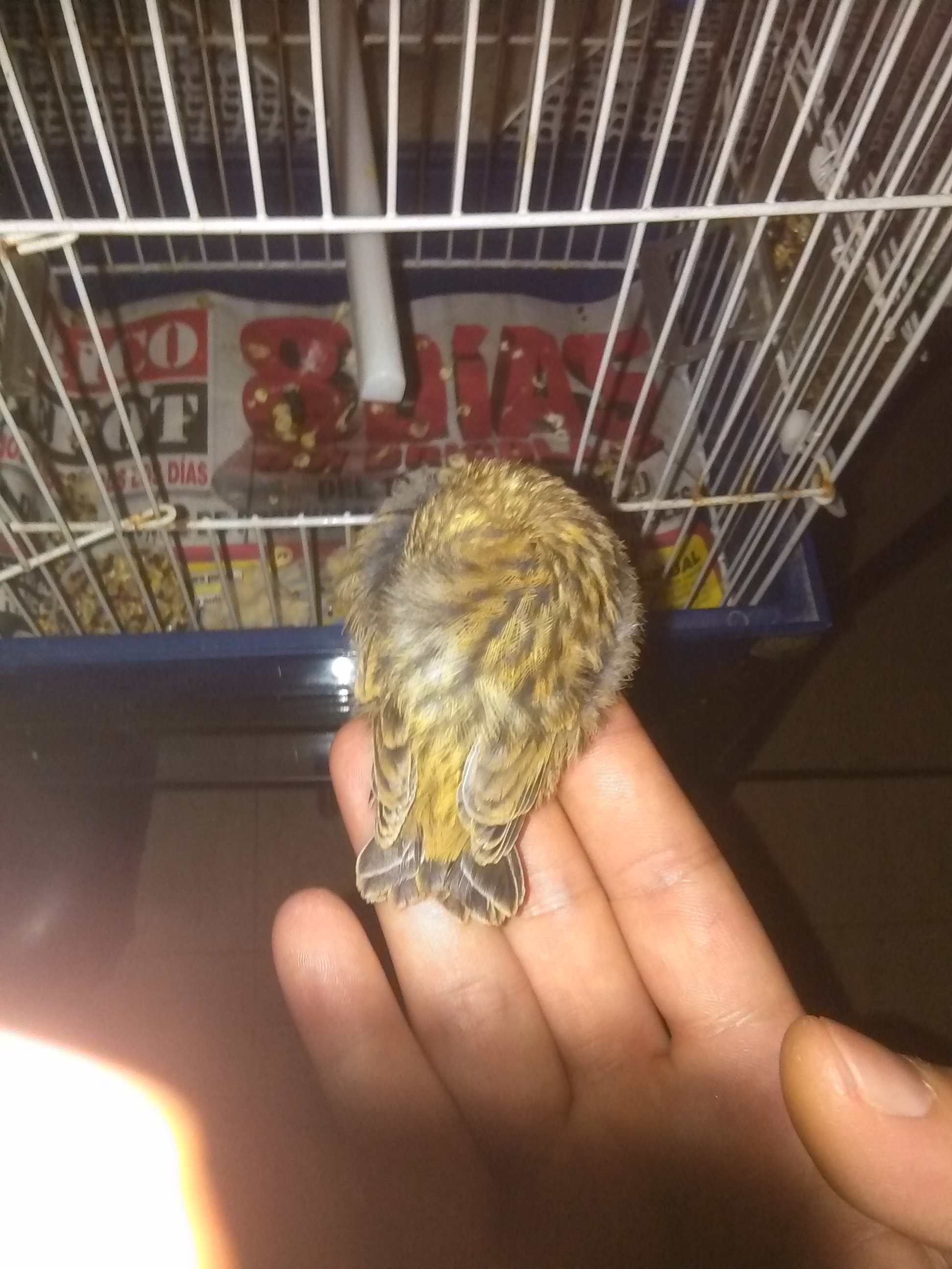 esta tarde, en la ventana de mi casa, me encontrado un pajarillo, que es muy chico todavía, apenas puede volar, un vecino me a dejado una jaula, pero no sabe que pájaro es, me podéis echar una manó por favor.