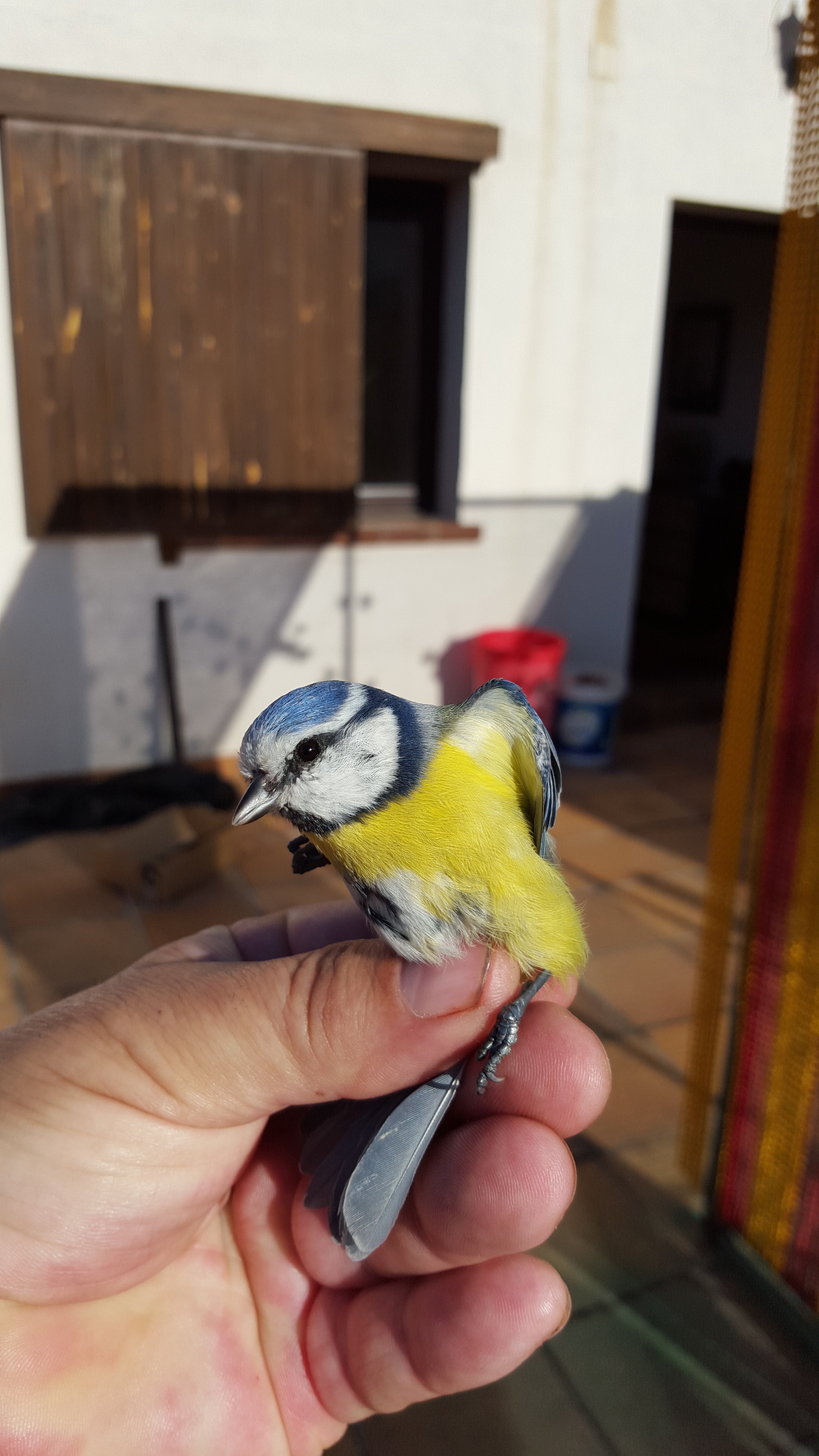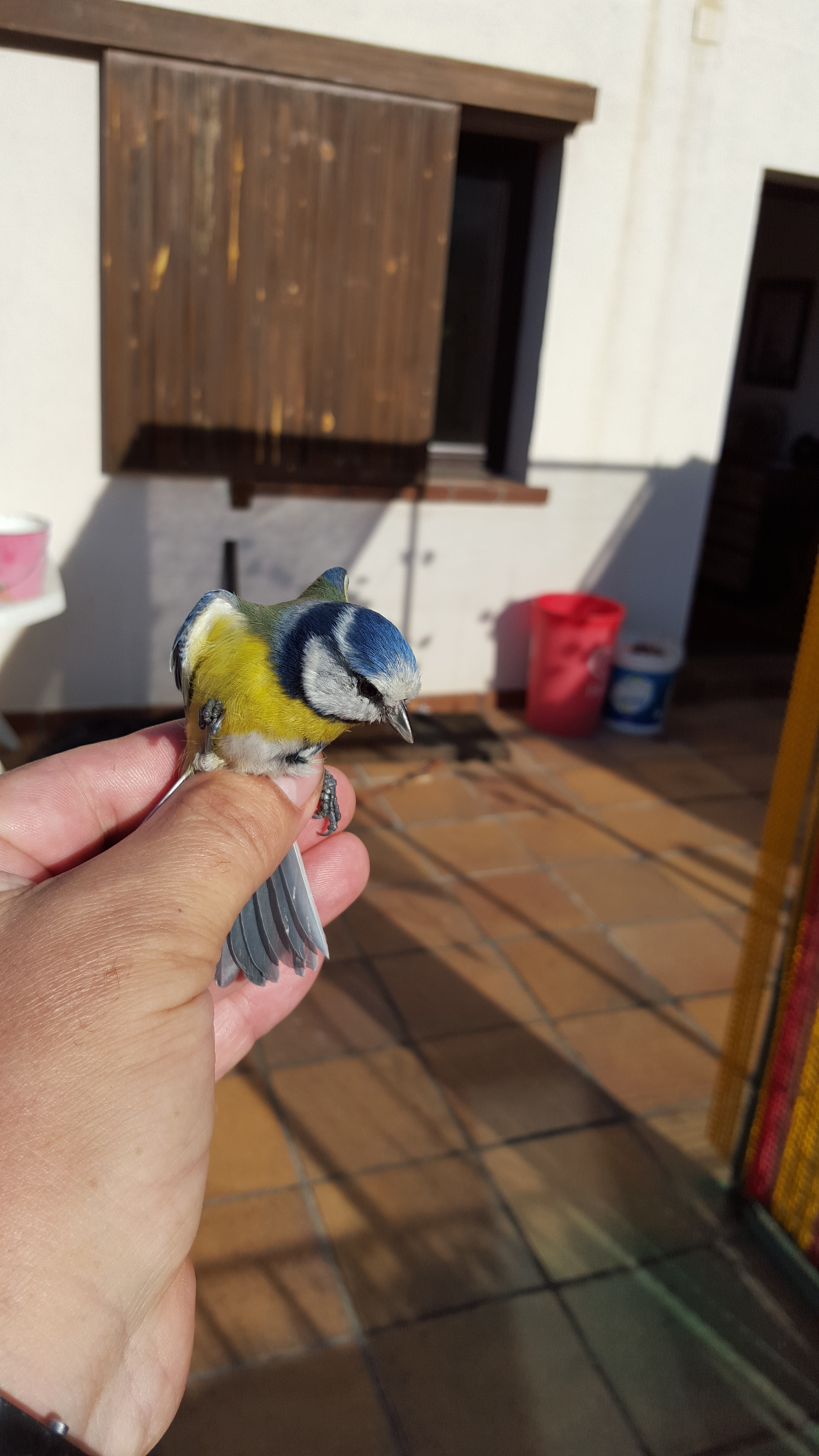 Tengo una terraza donde tengo los pajaros y para que no se los coman los depredadores tengo una red de esas para coger pajaritos,no se si le llaman una "red china"? que da la vuelta a la terraza y así me evito sorpresas:Que por cierto hoy se me ha enrredado este herrerillo azul que es tan bonito que es un sacrilegio tenerlo encerrado jejejejeje